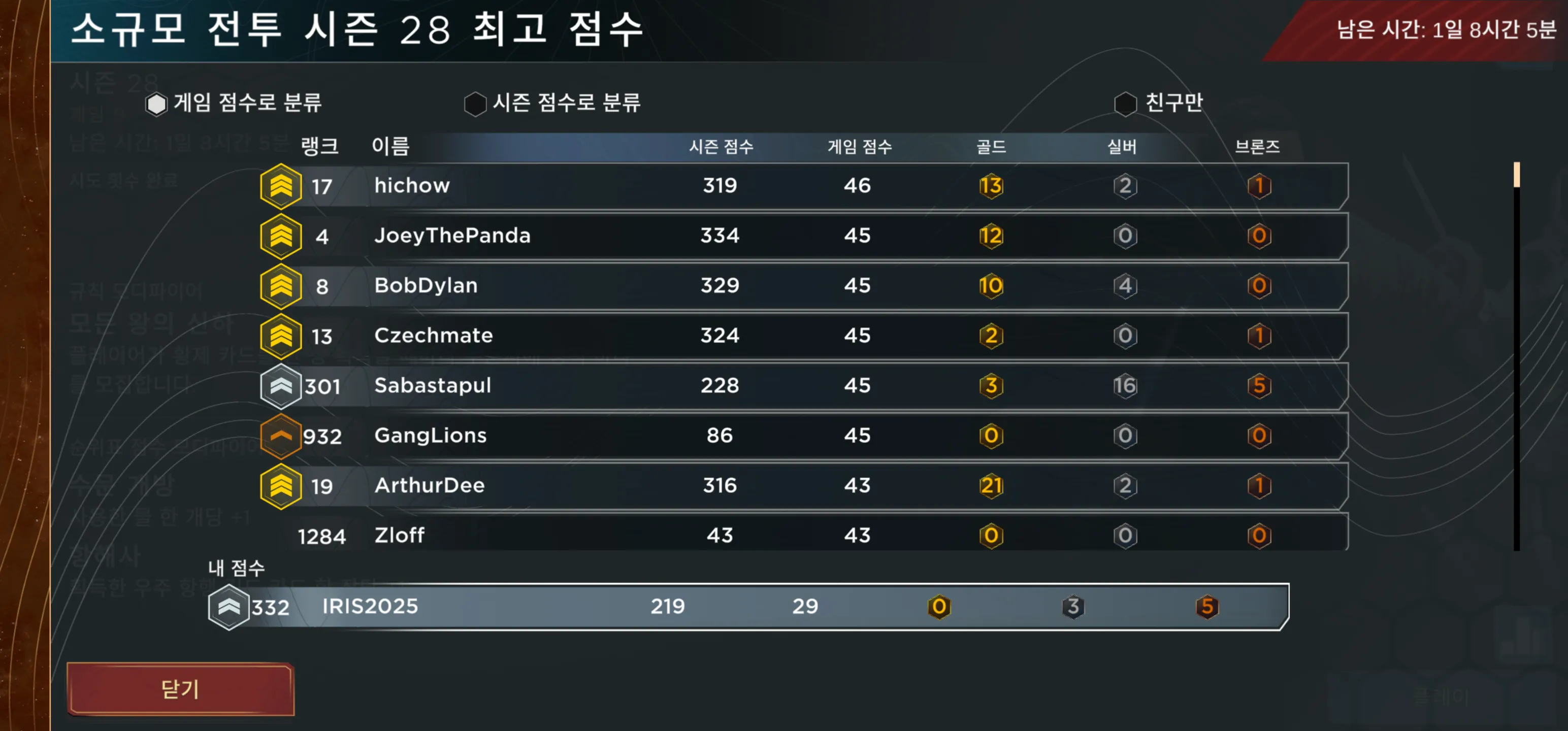 - • 듄 임페리움 소규모 전투 시즌28 게임 8 - 44점! 시즌 최고 점수 경신하며 압도적 1위